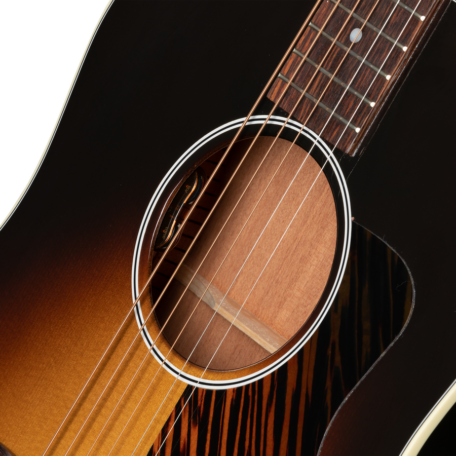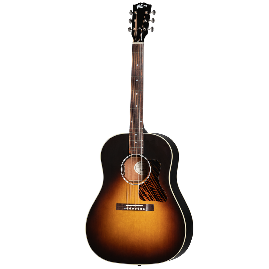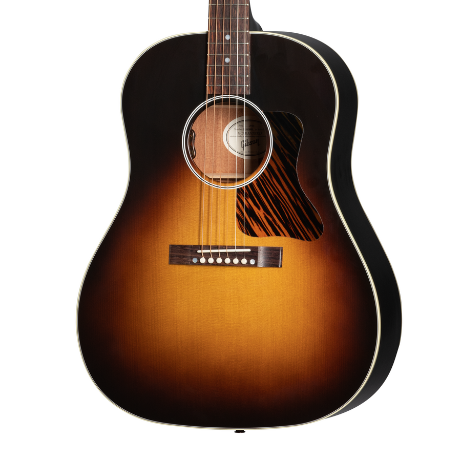 The J-35 evolved from the Jumbo in 1936, a time when the Great Depression was still wreaking havoc on Americans. Gibson developed the J-35 to be a pared-down model that still offered musicians a warm and balanced instrument. This J-35 delivers every bit of the seasoned, vintage look, feel, and sound of those classic models. Discerning flat-top players will love the rich, full-bodied tone from this vintage-inspired, round-shoulder beauty, along with its superb playability and simple aesthetic charm. Includes a hardshell case.