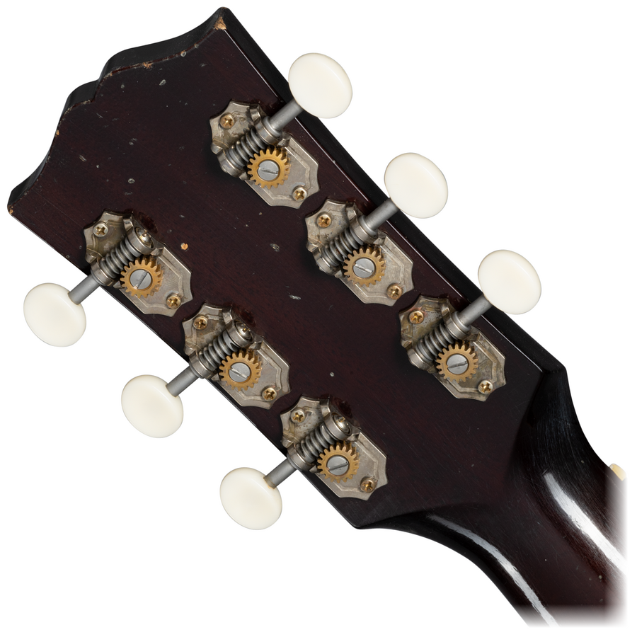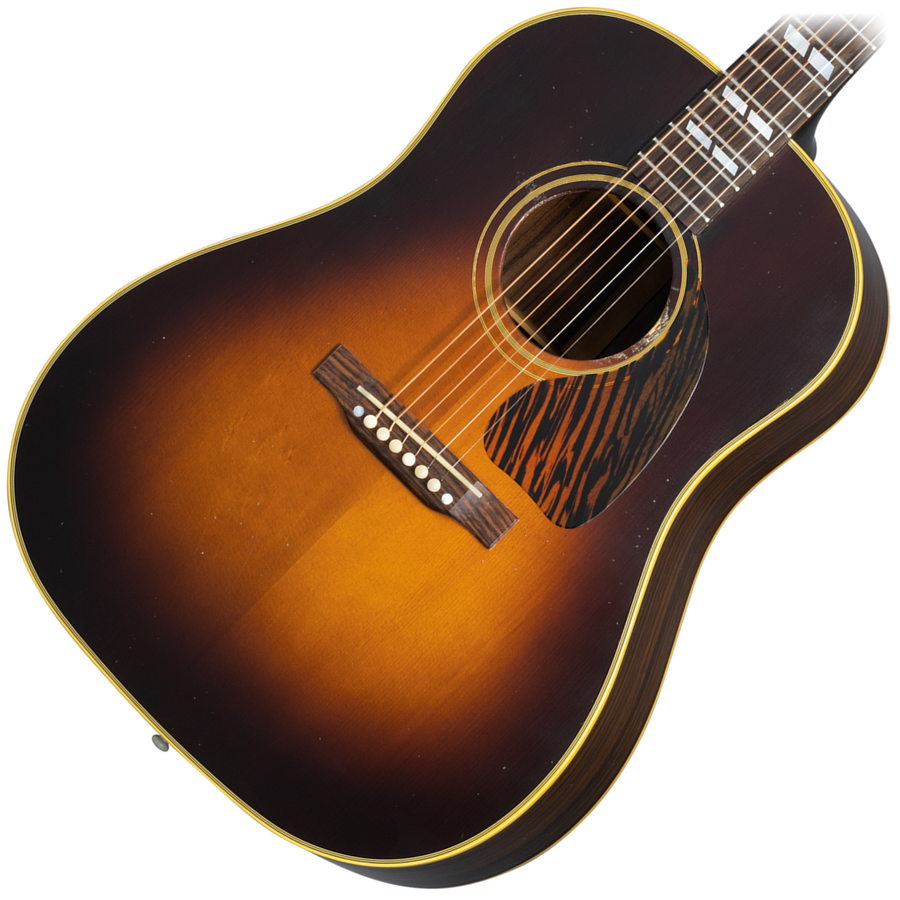 The Custom Shop Murphy Lab 1942 Banner Southern Jumbo features the vibe of a vintage Gibson Acoustic that has been well cared for over generations. The thermally aged Adirondack red spruce top and rosewood back and sides have outstanding tonal response and superior playability. At home playing first-position chords or picking lead blues licks, the Southern Jumbo is a versatile instrument. Proudly displaying the "Only a Gibson is Good Enough" banner on the headstock, this custom instrument also includes an open slot bridge, a bone saddle and nut, and the classic 1.77" nut width. It features Light Aging by the skilled artisans of the Murphy Lab. The Murphy Lab Light Aged finish treatment, paired with lightly aged hardware, simulates decades of light play wear, giving it the unique character, vibe, and feel of an original example from the Gibson Golden Era.