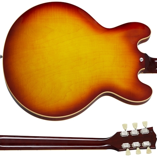 The Gibson ES-335 Figured is the perfect blend of form and function. Crafted with a maple centerblock and quarter-sawn Adirondack spruce bracing, players will be impressed by the lightweight feel and expanded range of tonal capabilities. Equipped with high-end appointments like our hand-wired control assembly with Orange Drop® capacitors, Gibson's new Calibrated T-Type humbucking pickups, Vintage Deluxe style tuners and light weight aluminum ABR-1 bridge and Stop Bar tailpiece anchored with steel thumb-wheels and studs. The AAA figured maple is set off by staggering gloss finishes including Sixties Cherry, Antique Natural, and Iced Tea.