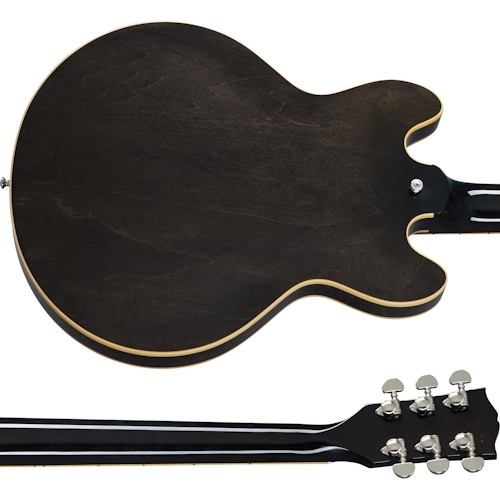 The Gibson ES-339 is a modern classic designed for those seeking the tone and look of an ES-335, but desire a slightly smaller, lighter instrument. The pearloid dot inlay rosewood fingerboard on a hand-rolled Rounded "C" mahogany neck remind players where it all started. The 57 / 57 Classic + humbuckers paired with our hand-wired tone circuit showcases the versatile Gibson ES tone that players have craved for over 60 years. Tuning stability and precise intonation are provided by the Grover Rotomatic tuners with Kidney buttons paired with light-weight Aluminum ABR-1 bridge and Stop bar tailpiece. Impressive gloss finishes include Cherry, and Trans Ebony.