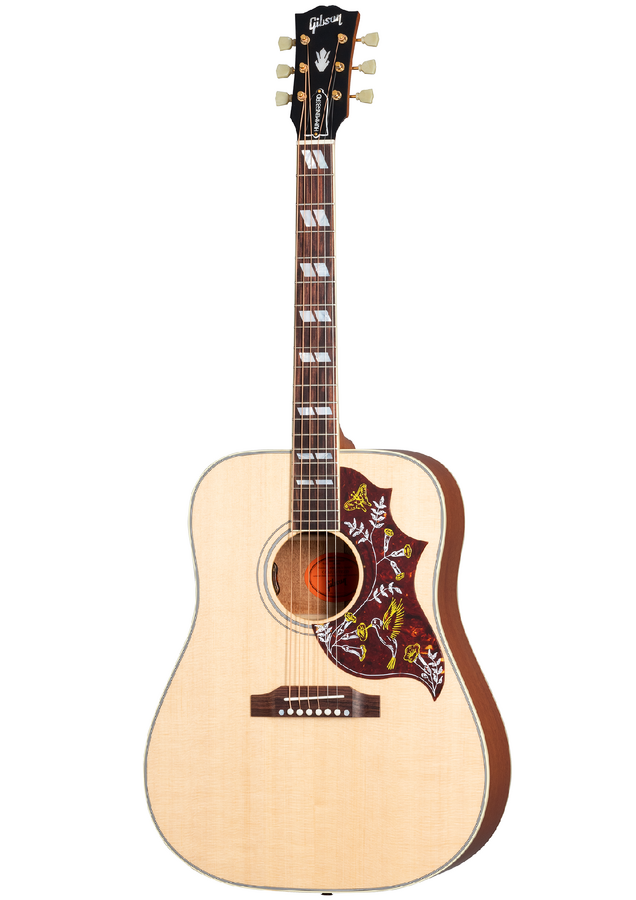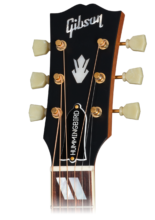 Hardware Bridge: Traditional Belly Up, Rosewood Saddle Material: Bone Tuning Machines: Gold Gotoh with Green Keystone Buttons Pickguard: Hummingbird Truss Rod: Adjustable Truss Rod Cover: Hummingbird Bridge Pins: TUSQ
