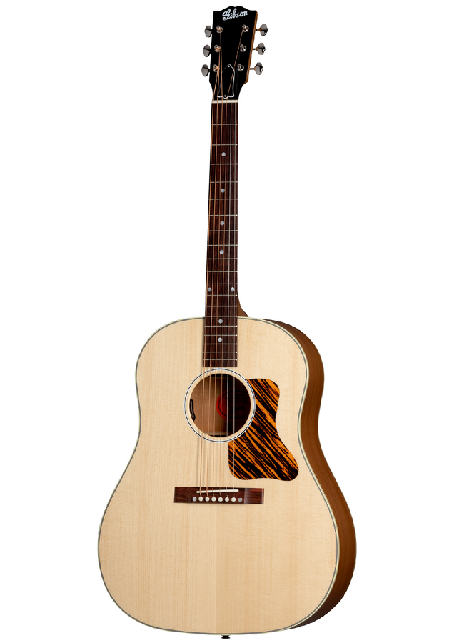 The J-35 evolved from the Jumbo in 1936, a time when the Great Depression was still wreaking havoc on Americans. Gibson developed the J-35 to be a pared-down model that still offered musicians a warm and balanced instrument. The J-35 30s Faded delivers every bit of the seasoned, vintage look, feel, and sound of our iconic J-35, with a satin nitrocellulose finish that only adds to its rich legacy and undeniable vintage vibe. Discerning flattop players will love the rich, full-bodied tone from this vintage-inspired, round-shoulder beauty, along with its superb playability and simple aesthetic charm. Includes a hardshell case.