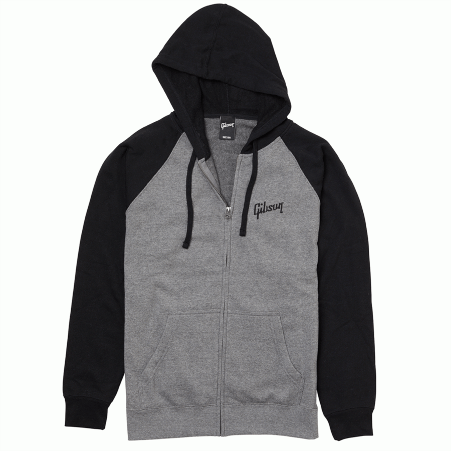 Classic full zip-up Grey hoodie with black arms and hood featuring the iconic Gibson logo in black on the chest.