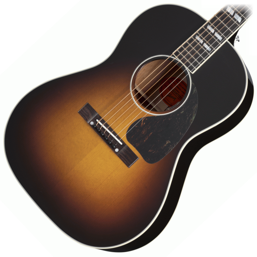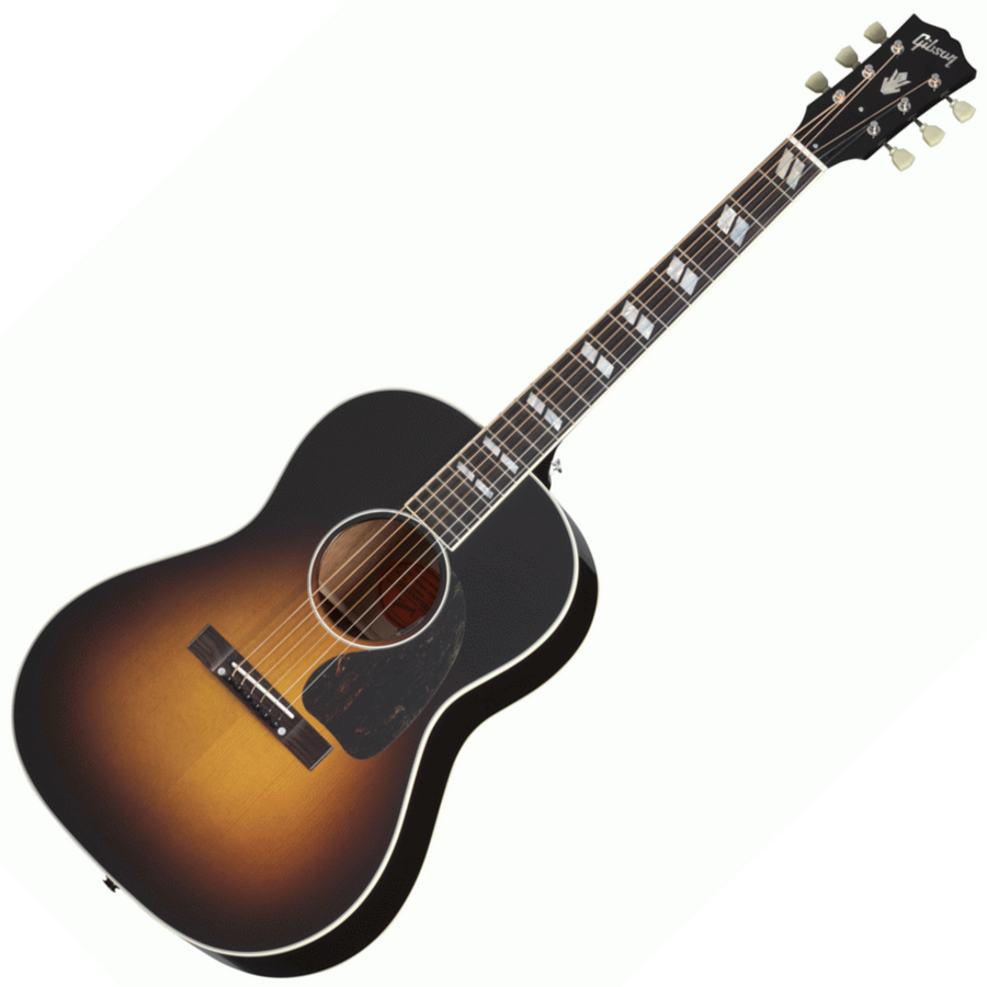 Nathaniel Rateliff's music, both solo and with the Night Sweats, incorporates a uniquely appealing blend of folk, soul, Americana, and R&B. His new Gibson LG-2 Western is also a blend of Nathaniel's own vintage Gibson LG-2 and Country Western. The smaller-sized mahogany body and Adirondack red spruce top deliver vintage-approved tone. The 24 3/4 scale length bound mahogany neck features split parallelogram inlays, and the headstock is crowned with a mother of pearl Gibson block logo and Crown inlay, a nod to the Country Western, while the nickel Gotoh Keystone tuners and black bridge pins are reflections of Nathaniel's personal guitar. The volume and tone controls of the onboard LR Baggs® VTC electronics are mounted at the bottom of the soundhole, per Nathaniel's preferences; the LR Baggs pickup makes the Nathaniel Rateliff LG-2 Western stage-ready, right out of the included hardshell case.