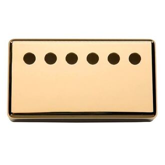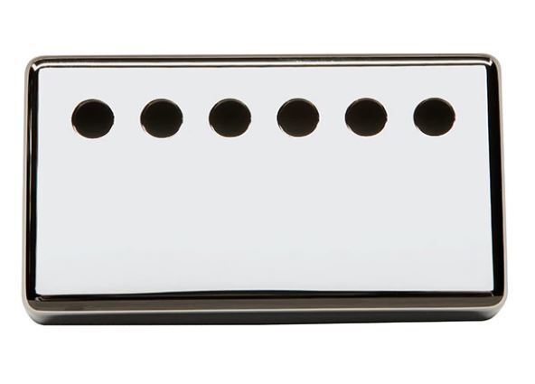 An original OEM replacement or restoration pickup cover that fits perfectly over any neck position Gibson humbucker, with a measurement of 50 mm between the centers of the outside poles. Available in either a Chrome, Gold, or Nickel finish.