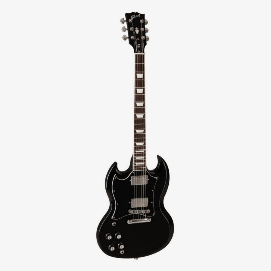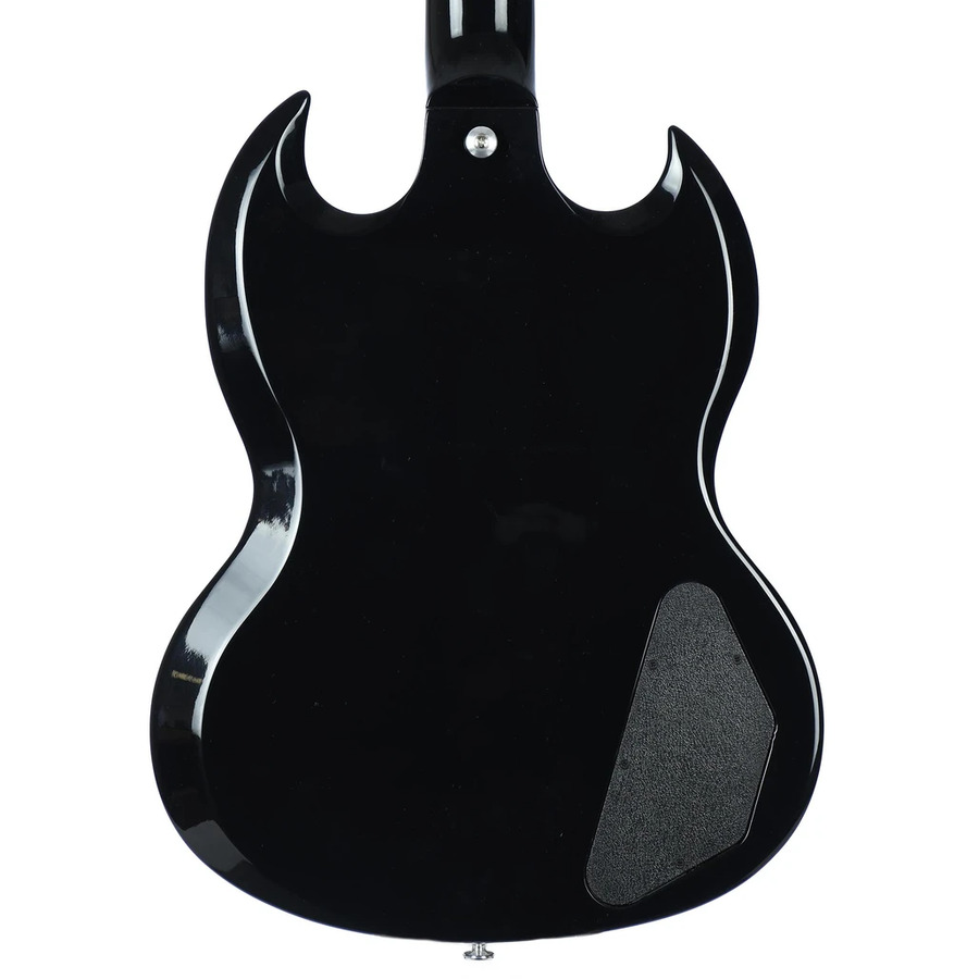 The Gibson SG Standard rocks the classic looks and features associated with the late 60's style SG models sought after by many. A rounded profile mahogany neck, bound rosewood fingerboard, long tenon 19th fret neck joint, and a solid mahogany body provide the backbone for singing sustain. The 490R and 490T Alnico II pickups provide the power to drive. A black, 5-ply, full-face pickguard set this SG Standard apart from others... a truly versatile classic.