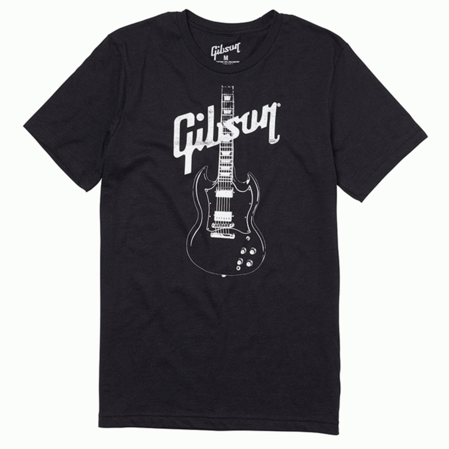 A classic Black Tee featuring the legendary SG model outlined in white with a white large Gibson logo across the chest.