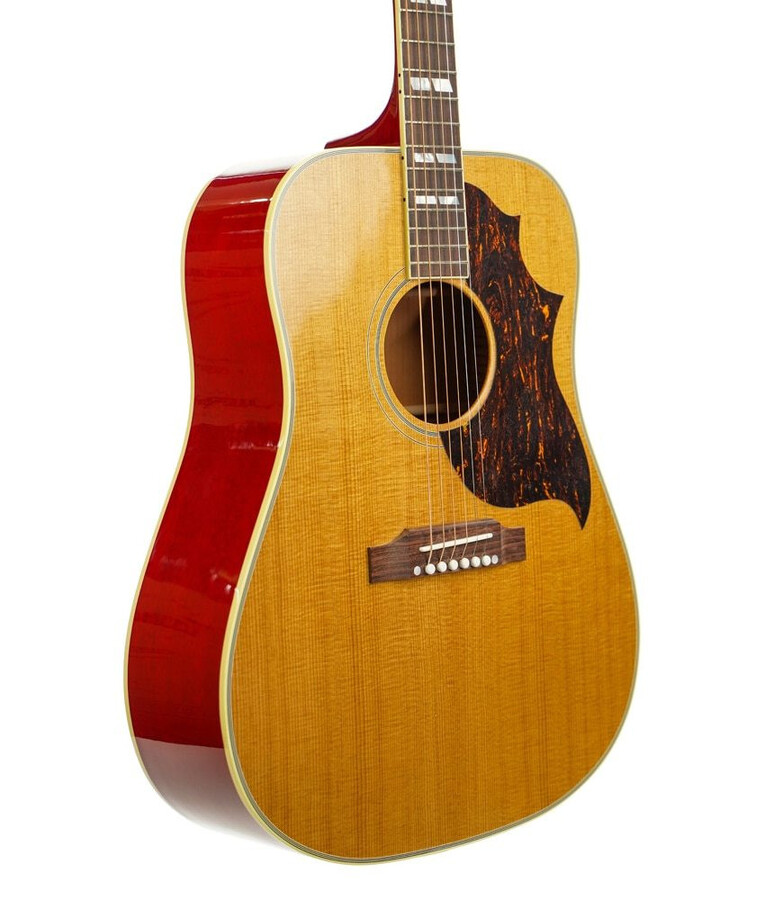 Created for Sheryl Crow and based off her own Country Western, the features of this signature model are designed to deliver the sweet voice of our classic Country Western with the added punch created from our 1930's Advanced bracing pattern. The Thermally Aged Sitka spruce top and hide glue provide additional projection and increased expression with a wider dynamic range. Outfitted with the astounding Amulet M analog pickup for accurate tone and response of the instrument when amplified. BODY: Body Shape: Square Shoulder Top: Thermally Aged Sitka Spruce Back: Mahogany Side: Mahogany Bracing: Hand Scalloped Advanced X-bracing Binding: Multi-ply top, multi-ply back Finish: Nitrocellulose NECK: Material: Mahogany Profile: Round Scale Length: 24.75" Fingerboard Material: Rosewood Fingerboard Radius: 12" Number Of Frets: 20 Frets: Standard Nut Material: Bone Nut Width: 1.725" Inlays: Mother-of-pearl Parallelograms HARDWARE: Tuner Plating: Nickel Bridge: Traditional Belly up, Rosewood Saddle Material: Bone Tuning Machines: Gotoh White Button Pickguard: 0.03'' Yellow Hummingbird Shape Truss Rod Cover: Black and White Bridge Pins: Tusq ELECTRONICS: Under Saddle Pickup: Amulet M Controls: Soundhole mounted Volume and Tone controls MISC.: Strings: 0.053, 0.042, 0.032, 0.024, 0.016, 0.012 Case: Hardshell Case Accessories: Gibson Accessory Kit