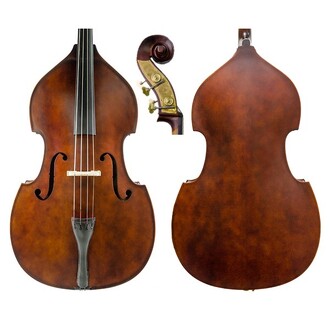 3/4 Gliga III solid double bass outfit finished with hand applied German-made dark antique oil varnish. Standard German pattern body. Made in Romania