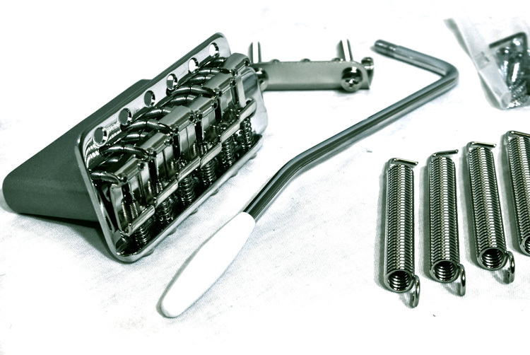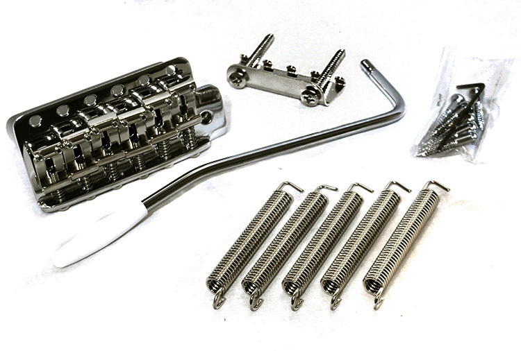 Gotoh GE101T Black Chrome Vintage 6-point Tremolo Bridge with Bent Steel Saddles and Zinc Block.