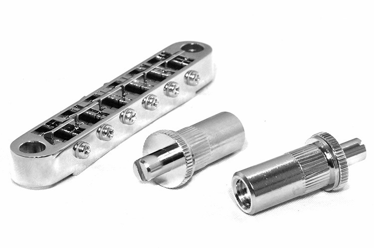 Gotoh GE103BT Tune-O-Matic Bridge (Nashville) in Chrome Finish with 33.5mm M8 Studs & 11.3 x 24mm Anchors.