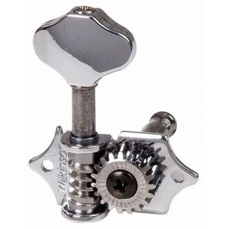 Set of 6 deluxe chrome machine heads with diecast housing. Small buttons. 6-in-line. 16 to 1 gear ratio.