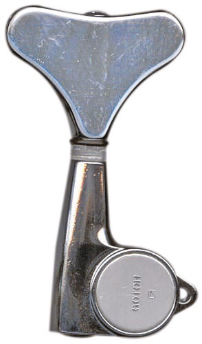 Set of 4 chrome plated diecast machine heads. Modern smaller shape buttons. 4-in-line. 20 to 1 gear ratio.