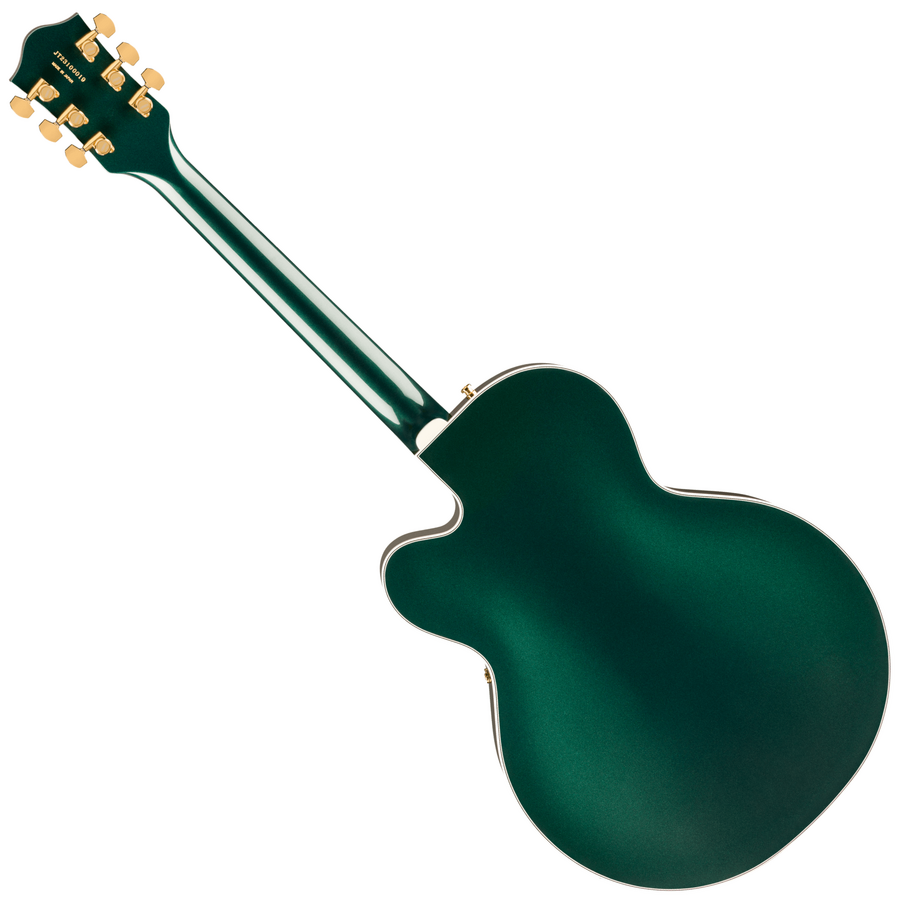 Body Body: Laminated Maple Body Finish: Gloss Body Shape: Nashville / G6120 Body Top: Arched Laminated Maple Body Binding: White with B/W/B Purfling Body Back: Arched Laminated Maple Body Style: Gretsch Hollow Body Guitars Body Material: Laminated Maple Cutaway: Single Cutaway Bracing: Arc-Tone Bracing Waist: 9.5" (241mm) Sound Hole: F-Holes, Bound