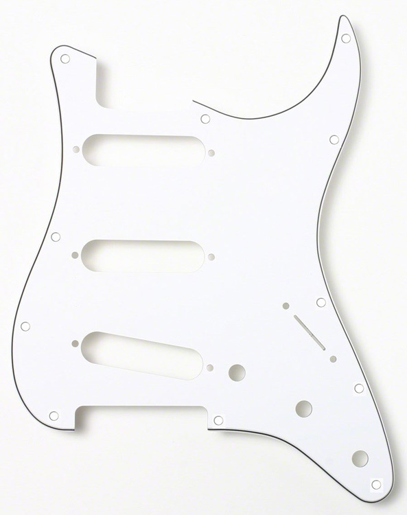 GT 3-Ply ST-Style Electric Guitar Pickguard in White with 22 Holes. Suits 3 x Single Coil Pickup models. (Pk-1)