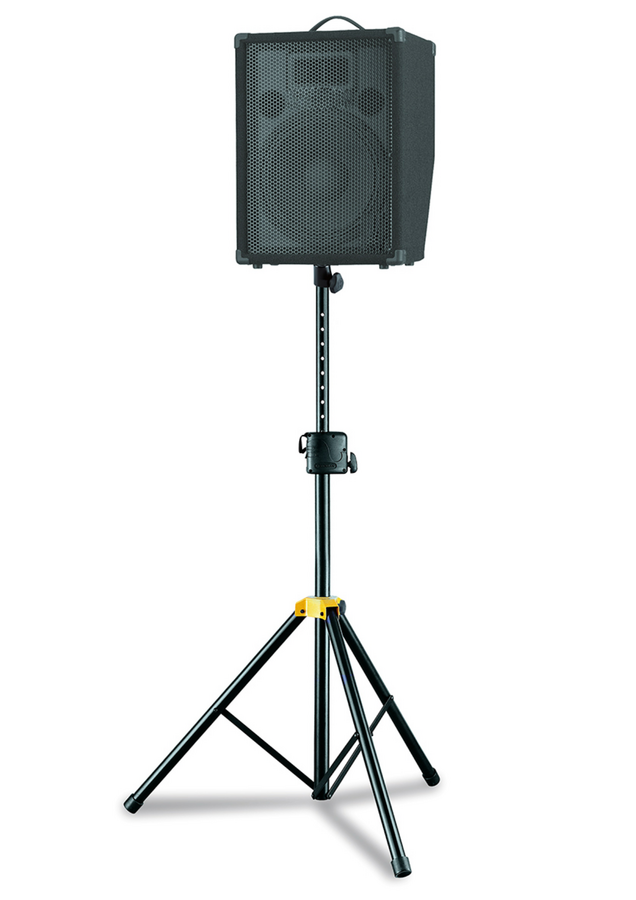 The HERCULES AutoLock Speaker Stand SS410B features the Quik-N-EZ AutoLock System, the EZ Adaptor pole top, the built-in metal leg housing, all-aluminum tubes, and a safety pin for security.