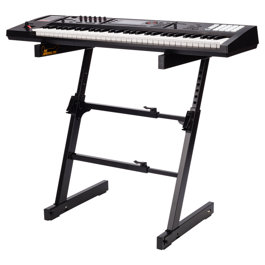 The HERCULES Z-Style Keyboard Stand KS400B has a built-in AutoLock system for easy height adjustment and has a one-piece compact folding design.