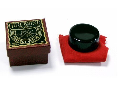 Hidersine deluxe rosin can be used on violins or violas. This dark amber rosin is slightly softer and grabs the strings a little more. It comes wrapped in a small piece of cloth so you can rosin your bow Without getting sticky fingers. 30gm cake. Hidersine 6V Violin Rosin - designed specifically for use With Steel Strings and made to an original recipe using a unique blend of waxes and resins. Black, Large rosin cake on traditional cloth. Approx 34gram Presented in a traditional box.