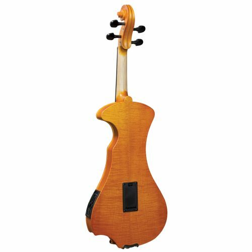 Contemporary look, traditional heart. Although the Hidersine HEV2 is a modern-looking violin, it is built to the same exacting standards as an acoustic instrument of the same level. The body is made of birch, which helps produce a good resonant tone when amplified. The birch body however has a veneer of flamed maple on the top and back which echoes the look of the hollow maple bodies of acoustic violins. The pegs, fingerboard and chinrest are made of genuine ebony. The use of ebony has long been a mark of a quality violin, as ebony is an excellent hardwood which can withstand the strain of high tension strings for a very long time. Therefore, not only with the fittings look and feel authentically traditional, they will last a lifetime of wear unlike those instruments that use inferior wood, painted black to look like ebony.