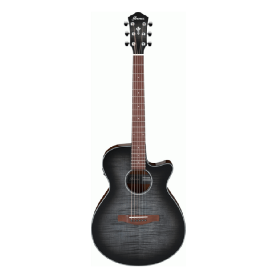 The Ibanez AEG70 TCH Electric Guitar in Transparent Charcoal Burst High Gloss - The AEG Series' slender, single-cutaway bodies deliver powerful and balanced acoustic sound, unplugged or through an amp or PA system. These guitars combine easy playability, classic solid and sunburst finishes, and intuitive electronics to create a quality, workhorse acoustic guitar that will rise to any occasion. High quality Ibanez under-saddle pickups and Ibanez preamps with onboard tuners provide sparkling tones that sound great in any environment.