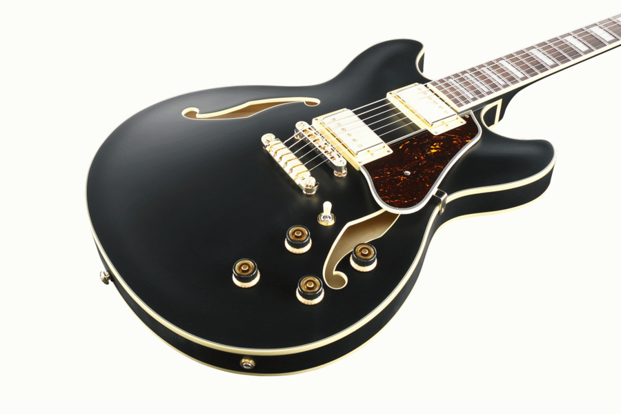The Ibanez AS73G BKF Electric Guitar in Black Flat - The AS is a semi-acoustic guitar built to tackle just about any genre of music you throw at it. The pickups are mounted directly to the center block for increased sustain and feedback elimination.