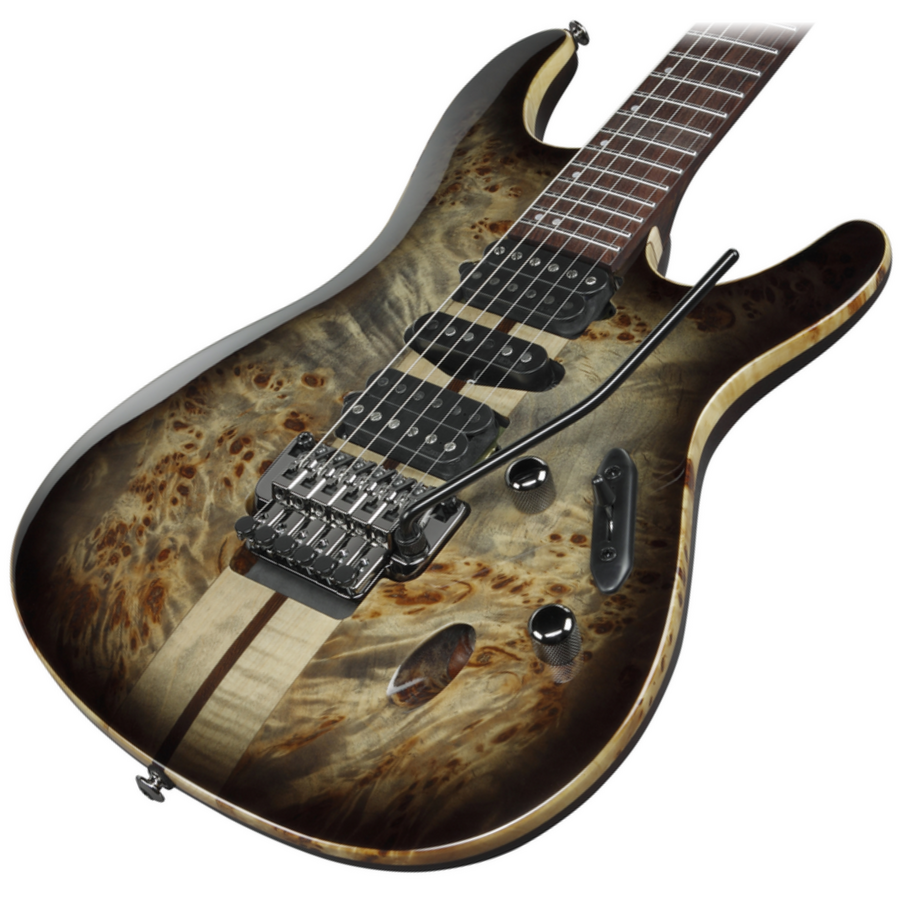 Poplar Burl/Walnut/Curly Maple/Panga Panga top / African Mahogany body The Poplar Burl/Walnut/Curly Maple/Panga Panga top flaunts a gorgeous wood grain. African Mahogany used as body wood delivers a rich mid-low end.