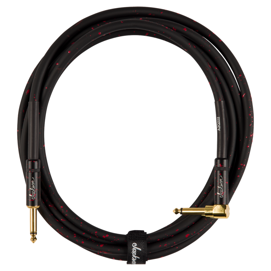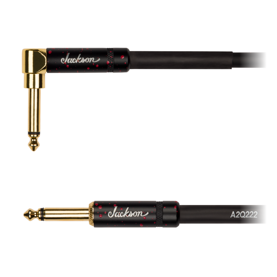 Sinister tone for serious players! Designed with the high-performance player in mind, Jackson® cables offer durable 24K gold-plated jacks, heavy duty shielding and 8mm OD wire. This cable features one straight plug and one right-angle plug for even the most difficult to reach jacks on your axe. The 8mm copper wire provides exceptional signal delivery to your amplifier or pedal board. Heavy duty shielding keeps unwanted noise out of your signal chain.