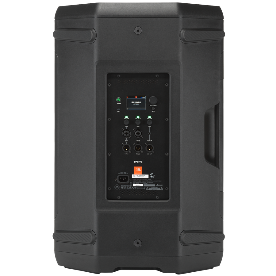 PRX915’s class-leading DSP package, accessible via an onboard color LCD or the JBL Pro Connect app, features 12-band parametric EQ for system tuning and nuanced tonal control; integrated dbx Drive Rack technology includes live and fixed Automatic Feedback Suppression, soft system limiter with Soundcraft Overeasy option and speaker delay settings and presets.
