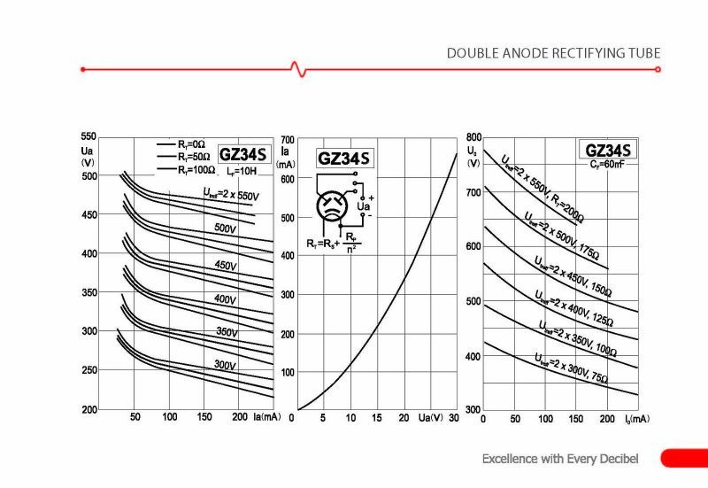 DOUBLE ANODE RECTIFYING TUBE - GZ34S is 5AR4 octal base rectifier diode. It provides strong current output. Suitable for all Hi-Fi and Guitar amplifiers.
