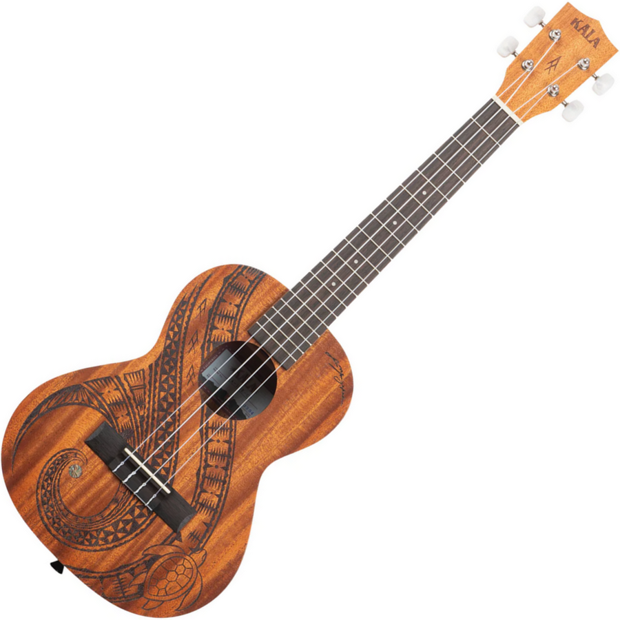 In collaboration with Maori cultural artist Sam Mangakahia, Kala presents “The Voyage Collection”— 3 unique pieces of native Maori artwork. Sam has been telling stories through his art for 13 years and has created over 450 custom art pieces that each have a story. Each of the 3 designs/stories focus on specific human experiences we all share in common — Unity, Courage and Guidance— designed with natural elements that speak powerfully to these experiences. The artwork is laser-etched on mahogany and each ukulele comes with a personalized Voyage Collection gig bag, and story card hang tag telling the unique message of each piece of art.