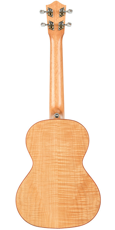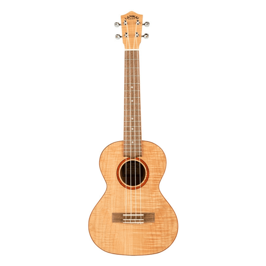The Flame Maple with blood wood binding ukulele by Lanikai delivers dynamic new features such as a wider nut for player comfort, select figured wood, open back tuners, wood marquetry, NuBone XB nut and saddle, DAddario strings, satin finish and a padded gig bag.