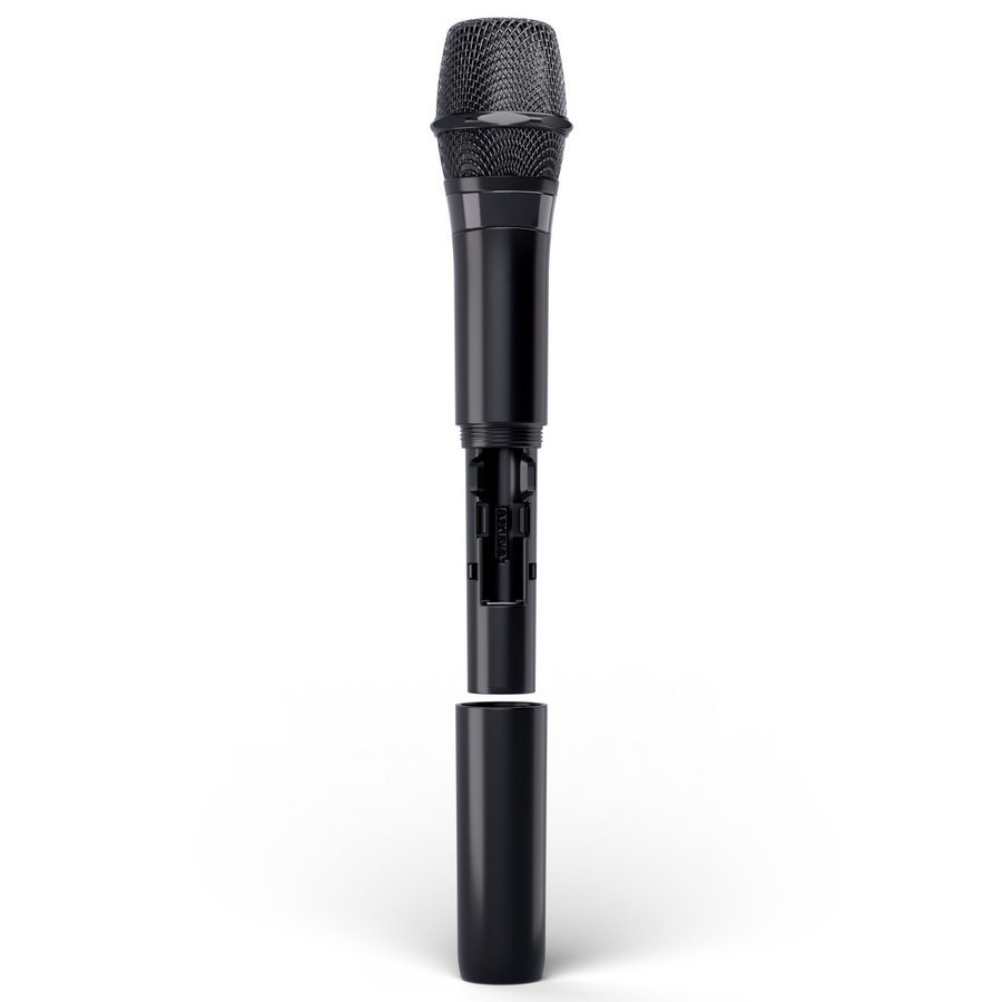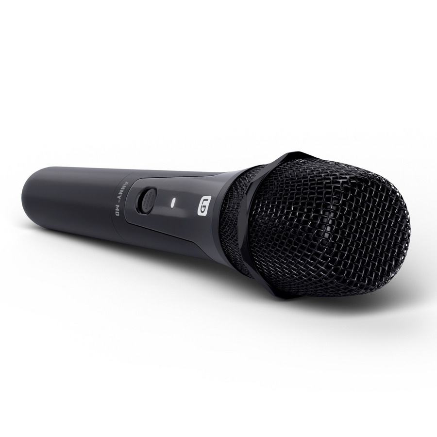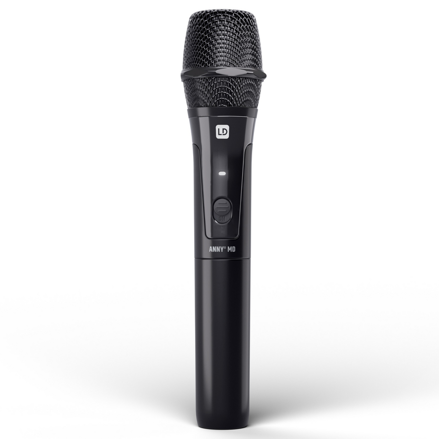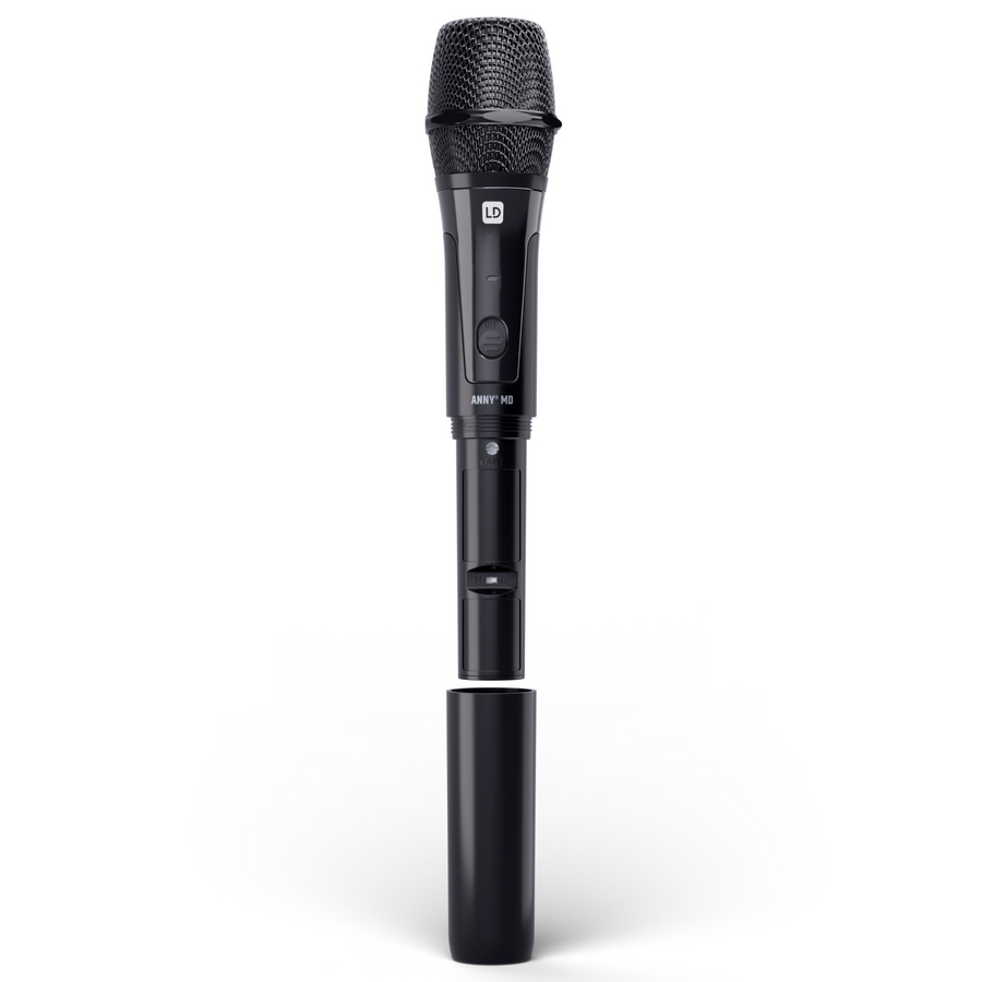 The wireless dynamic ANNY® handheld microphone with cardioid capsule transmits with the B5 frequency band in a frequency range of 584 - 608 MHz. With an output power of 10 mW, the wireless microphone allows audio transmission up to 80 metres. The microphone is easily and conveniently synchronised with the ANNY® receiver via infrared. Powered by two AA batteries (included), the ANNY MD can operate for up to eight hours without a battery change. A built-in status LED gives a white light when switched on and a red light when the battery is low.