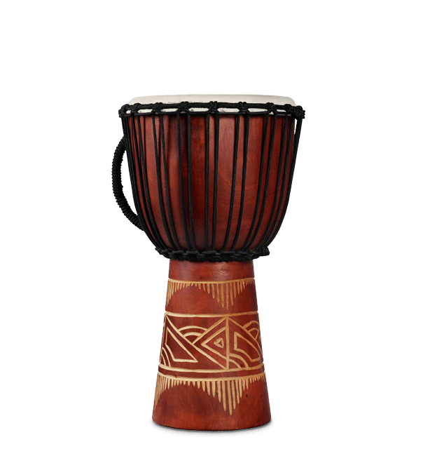 LP’s World Beat Wood Art Djembes are hand-carved with organic African designs from solid, plantation-grown logs. The drums feature natural, goatskin heads and durable, nylon rope tuning that stays in tune and lasts a lifetime.