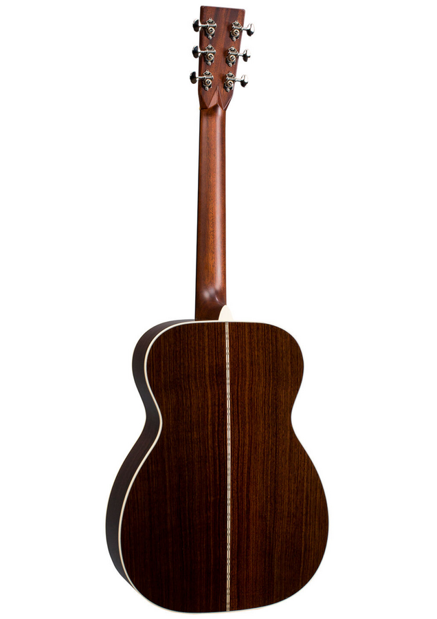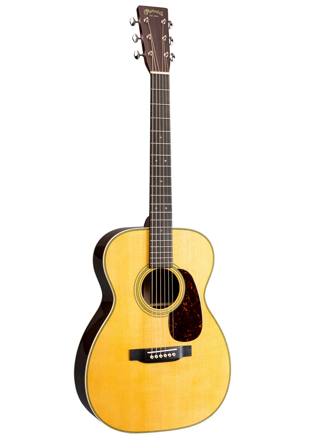 The Martin 00-28 is a trusted choice for players who value rich, resonant tone and effortless playability. Its smaller, comfortable Grand Concert body size delivers a soft yet expressive voice, with clear trebles complemented by warm bass, making it ideal for fingerstyle, intimate strumming, and everything in between. Handcrafted with a solid spruce top and solid East Indian rosewood back and sides, the 00-28 offers deep bass, rich overtones, and exceptional resonance, balanced beautifully for any playing style. The satin neck with a Golden Era (GE) Modified Low Oval profile, high-performance taper, and 24.9" scale length ensures unmatched playability. Elegant touches like bold herringbone top inlay, antique white binding, an ebony bridge with bone pins, and an ebony fingerboard with abalone diamond and square inlays complete its timeless design, making the 00-28 a guitar you can trust to unleash the artist within.