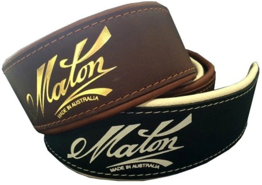 Maton Brown Leather Deluxe Padded Guitar Strap With Logo