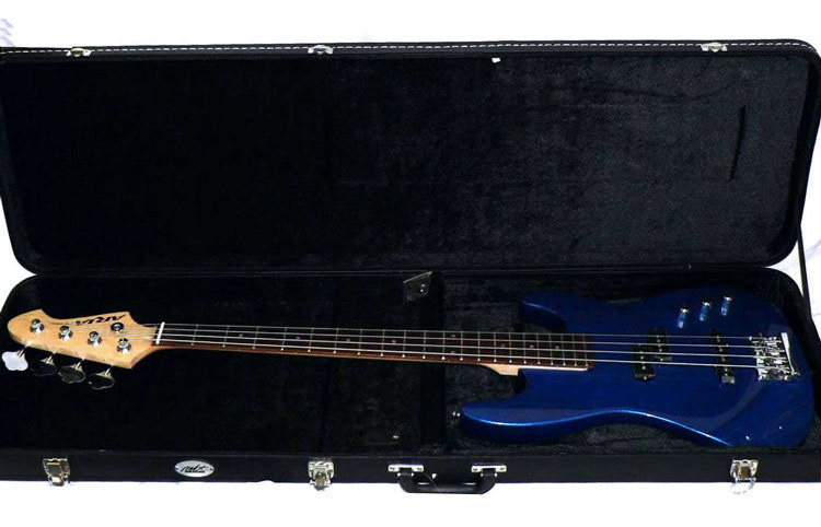 MBT Wooden Electric Bass Guitar Case in Black. This is a rectangular shaped case that fits most standard bass guitars.