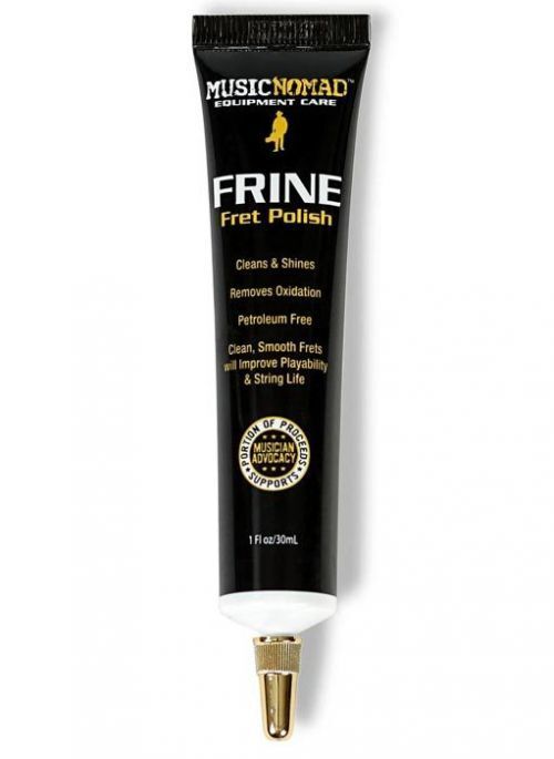 Music Nomads revolutionary FRINE Fret Polish has micro-fine polishing compounds that safely & quickly remove oxidation, dirt & oil. Restore smoothness & a mirror shine to your frets without the hassle of harsh cleaners & messy steel wool.
