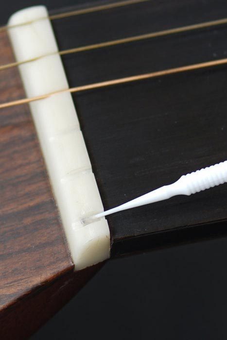 Apply to Nut Slot, Bridge, Saddle and String Guides every string change. Most importantly, it does not affect the sound or sustain of the strings. Great for moving parts, such as open tuners & tremolo bars. A little goes a long way to help you sound the best.