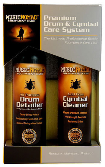 Our Acid Free Cymbal Cleaner is fast at cutting through layers of oxides and restoring an eye glaring shine to cymbals. Our All Purpose Drum Detail Polish works fast and effective on all drum shells, hardware, drum thrones, electronic drum pads and drum cases.