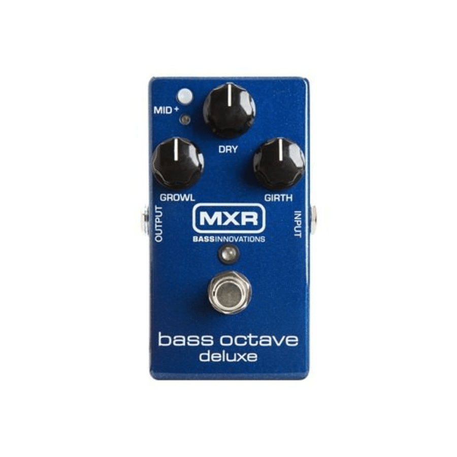 The Bass Octave Deluxe is a dual-voice octave pedal that offers analog tone, true bypass, and a variety of tonal options. MXR's 18 volt Constant Headroom Technology provides high headroom and superior tracking. Use the Dry knob to mix in your direct signal, and hit the Mid+ switch to add up to +14dB of internally adjustable mid frequencies (400Hz or 850Hz). Finally, mix in two separately controlled octave voices—Growl (for throaty tone) and Girth (for deep tone).