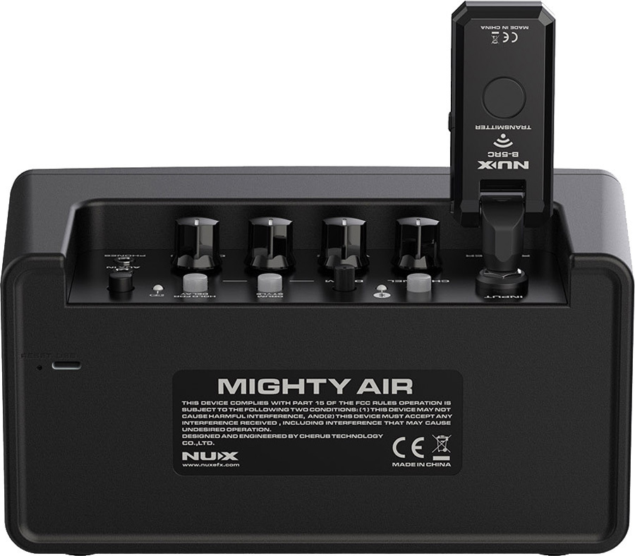 NUX Mighty Air is a wireless stereo modelling guitar / bass amplifier with Bluetooth connectivity and a dedicated app to enhance your tone from your mobile devices. It can serve you for bedroom practice, pre-show warming up, travel entertainment and more.