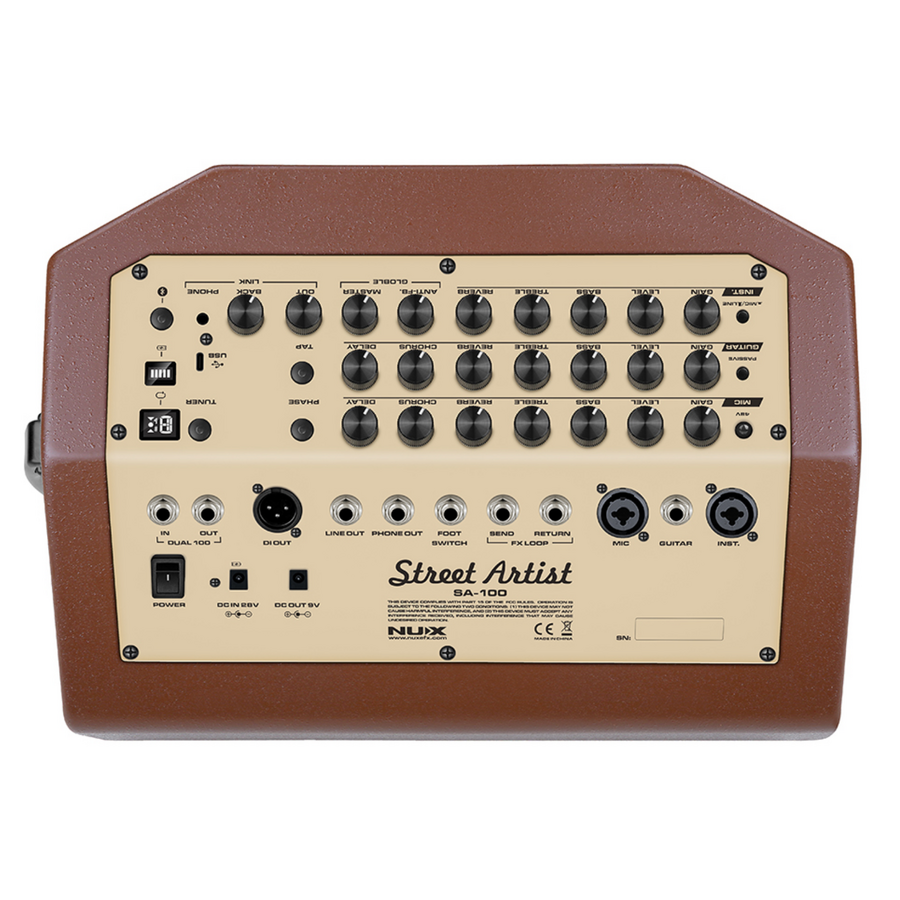 The NUX SA-100 is a rechargeable amplifier built for busking, live streaming, and recording. It features a warm,