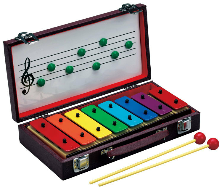 Opus Percussion 8-Note Resonator Bell Set in Wooden Case with Beaters & Magnetic Music Board