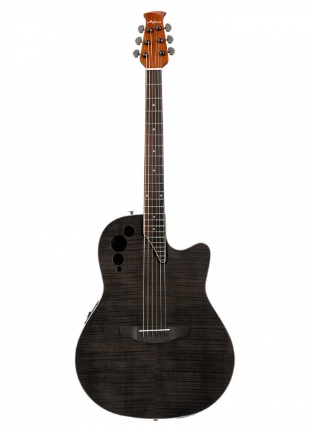 Applause Elite exotic wood models showcase Ovation’s talent for innovation while retaining the high standard of performance expected of a quality instrument. This cool transparent black flame finish Applause Elite model includes Ovation inspired appointments such as a flamed maple top, scalloped X bracing and laser-cut, multi-port sound holes. The headstock design creates a sleek aesthetic, while the fast playing neck, Ovangkol fretboard and bridge along with the composite Lyrachord® (R) mid-depth body allow for effortless playing. The CE304T preamp with onboard tuner is paired with the Ovation Slimline pickup to give players top-grade electronics that offer incredible clarity, definition and tonal balance. Your new guitar is here.