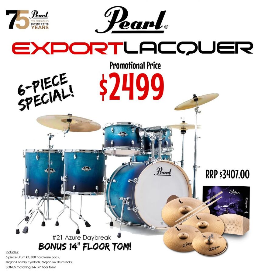 After 30 years of being the #1 Selling drum set in the world, Export Series is still the name every drummer knows. Having jumpstarted thousands of drumming careers by bringing quality and value into one package, today's Export continues to build legends. With features like Reference-inspired shell composition and a beautiful satin lacquer finish, Export is ready to fuel the fire for future drumming icons. 211,Azure Daybreak,6-ply/7.5mm Poplar/Asian Mahogany Shells,Stunning Lacquer Finish,Opti-Loc Tom Suspension System,Remo Drum Heads,Double-Braced Hardware Package,Matching 14x5.5 Wood Snare Drum,BONUS 14x14 FLOOR TOM!