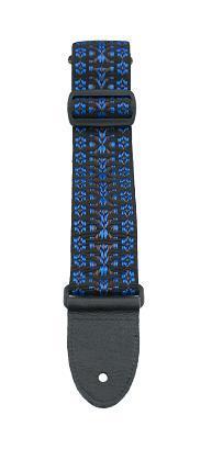 This 2" wide Polyester Pro guitar strap is made with a Blue & Black "Hootenanny" Mexican style fabric and is fully adjustable with leather ends. Adjustable length from 39" to 58".