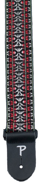 This 2" wide Polyester Pro guitar strap is made with a Light Grey & Red "Hootenanny" Mexican style fabric and is fully adjustable with leather ends. Adjustable length from 39" to 58".
