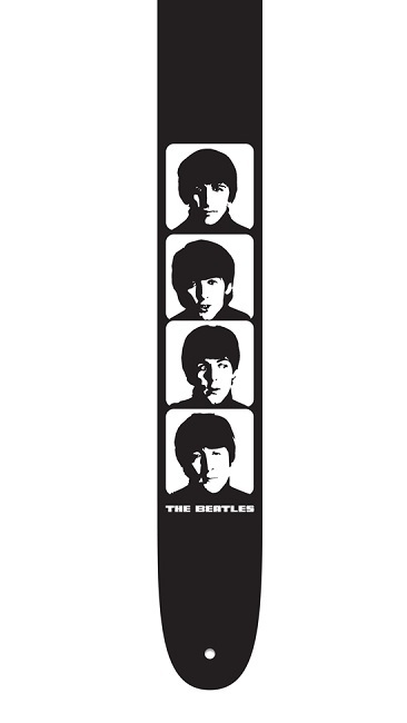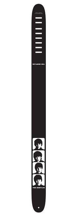 This is a 2.5" wide licensed Beatles guitar strap in black with "Band Member Photos". This strap is made from vegan friendly vinyl and has High Resolution Imaging which makes the images crystal clear. This strap is adjustable from 44.5" to 53" in length.