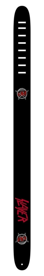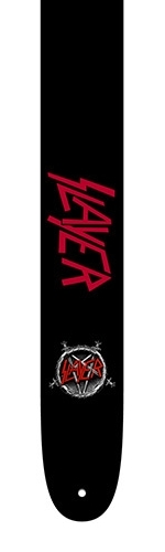 This is a 2.5" wide licensed Slayer guitar strap in black with red "Slayer" logo design. This 100% genuine leather strap is made with High Resolution Imaging which makes the picture crystal clear. This strap is adjustable from 44.5" to 53" in length.