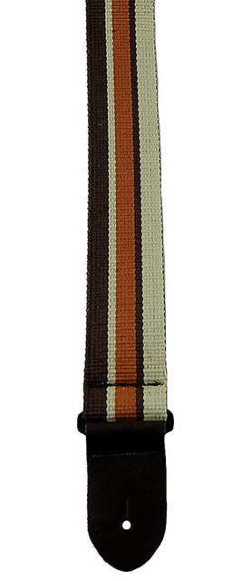 2" Deluxe Cotton Strap With Brown, Tan and Orange Stripe Design and genuine leather ends. Adjustable length from 39" to 58".